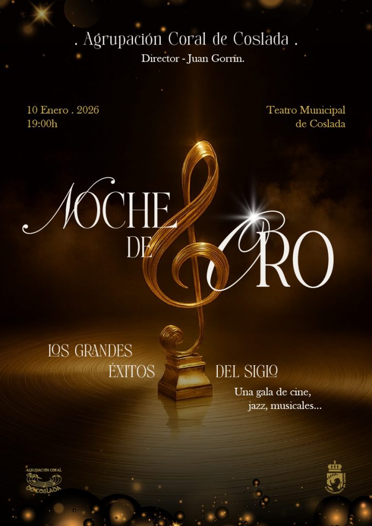 La Agrupación Coral de Coslada presenta Noche de Oro, una gala para estrenar el año con brillo, emoción y recuerdos musicales. Rendimos homenaje a los grandes éxitos del último siglo: clásicos del jazz, temas inmortales del cine y los musicales, y melodías populares que siguen haciéndonos cantar y soñar.